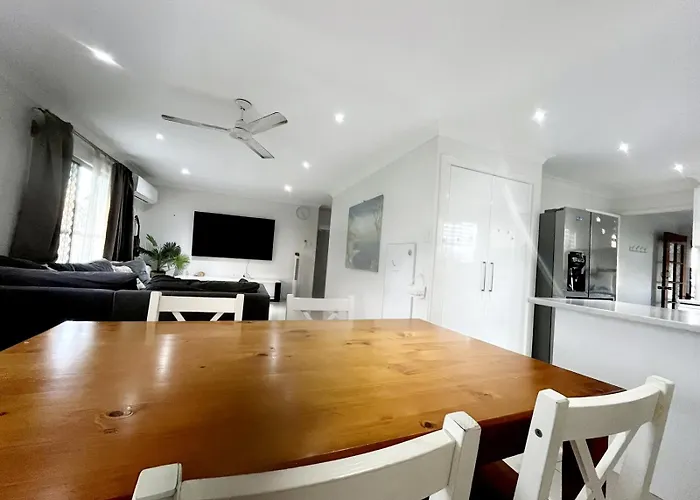 Esta casa de vacaciones se encuentra a 5 km del aeropuerto Hervey Bay y a un corto paseo de puntos de interés cultural como la Esfera Descubrimiento de Fraser Coast. A 1 km de la villa 3-Bedroom House In Central Hervey Bay los huéspedes encontrarán el Óvalo del Paseo Marítimo, mientras que el parque acuático Wetside está a tan solo 1,1 km. El establecimiento está a unos 10 minutos en coche de lugares familiares como el Parque Jump.